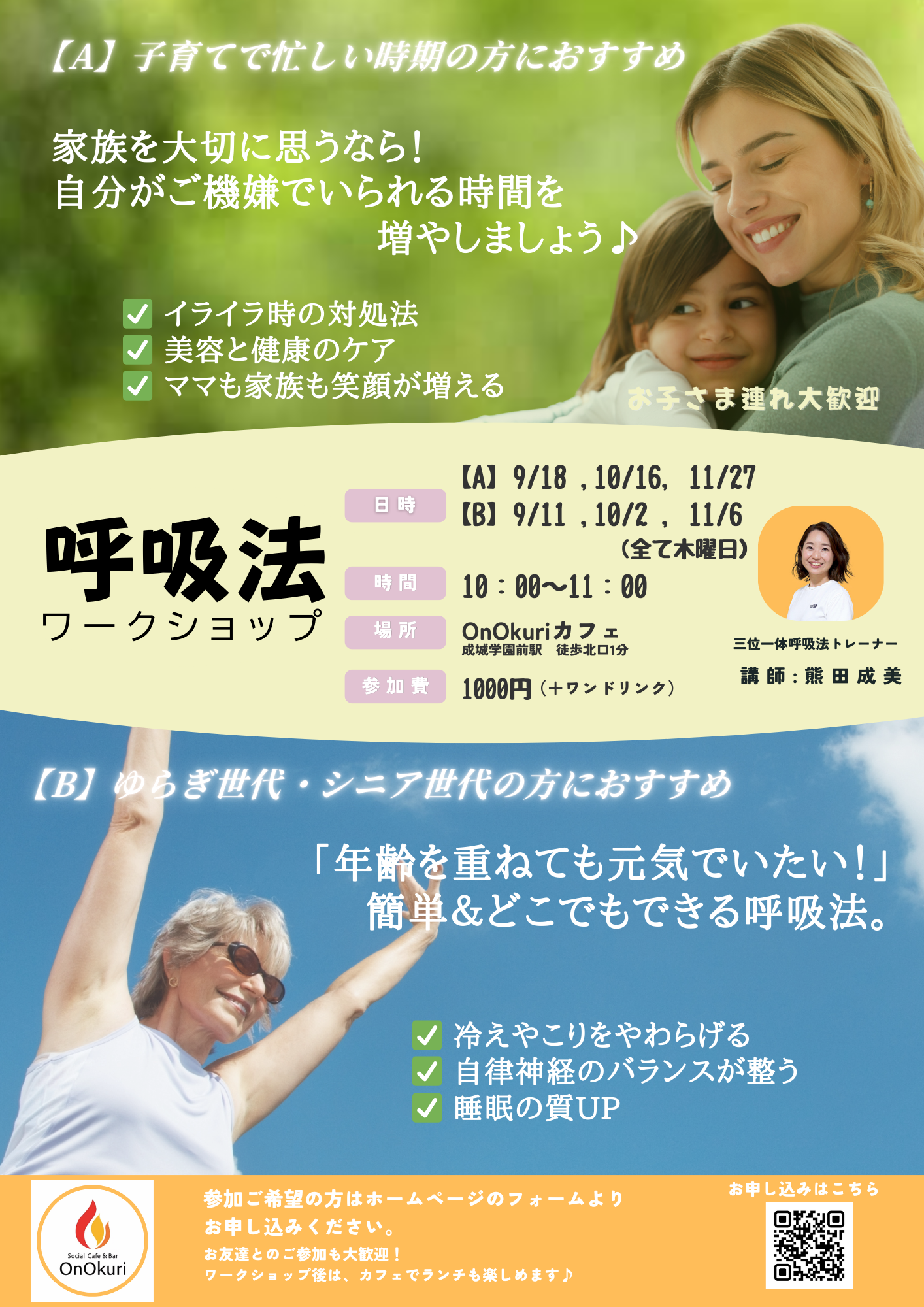 OnOkuriカフェ呼吸法ワークショップのお知らせ